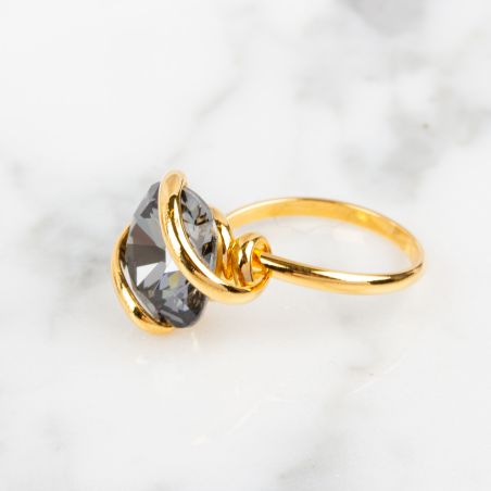 De steen is een Swarovski-kristal met een diameter van 13 mm . Deze ring is eenvoudig verstelbaar en past zich aan de maat van uw vinger aan.