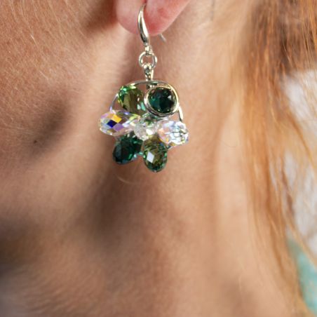 De Andrea Marazzini Extra Small Emerald Bouquet korte oorbellen met haakjes zijn delicate en verfijnde sieraden, perfect om een vleugje frisheid en kleur aan je stijl toe te voegen. Deze bloemoorbellen zijn 40 mm hoog en bieden een discrete maar elegante lengte. Elke oorbel is versierd met oogverblindende Swarovski-kristallen met een diameter van 22 mm, in smaragdgroene en transparante tinten die het licht prachtig opvangen.