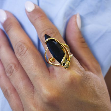 Benadruk je stijl met deze Swarovski Andrea Marazzini Navette zwarte ring , een sieraad dat gedurfde elegantie en verfijning belichaamt. Deze uitzonderlijke ring is versierd met een officieel zwart Swarovski-kristal van 35 mm hoog, geslepen in de vorm van een shuttle. De diepe, intense schittering van het zwarte kristal zorgt voor een opvallend contrast met de gouden zetting, waardoor een vleugje mysterie en verfijning wordt toegevoegd aan dit unieke sieraad.