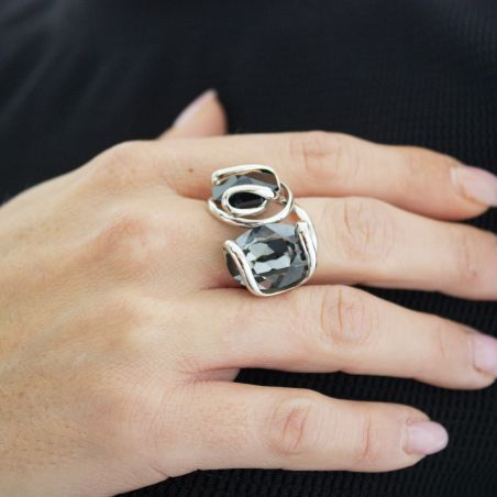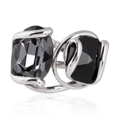 De Andrea Marazzini Swarovski Ovale Silver Night Double-ring is een stoer en modern exemplaar. Het beschikt over twee prachtige Swarovski-kristallen, geslepen in tinten van intens grijs en zwart, geplaatst in een vloeiende en elegante zilveren zetting. Kristallen voegen met hun mysterieuze reflecties een vleugje verfijnde sprankeling toe. Ideaal voor wie op zoek is naar een ring die zowel verfijnd als gedurfd is.