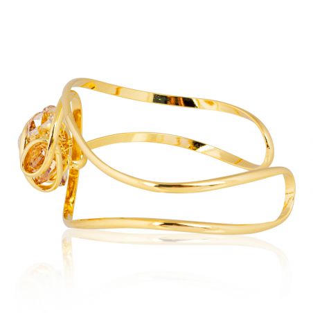 Ontdek de Andrea Marazzini armband “Ninfea Golden Shadow” sieraden van Andrea Marazzini, een uniek en elegant stuk dat kunst en verfijning combineert. Dit gouden juweel, handgemaakt in Italië, belichaamt perfect de essentie van de creativiteit van het merk. De vloeiende structuur van goudkleurig metaal omringt subtiel een sprankelend ‘Golden Shadow’-kristal, dat doet denken aan een waterbloem met een lichtgevend hart.
