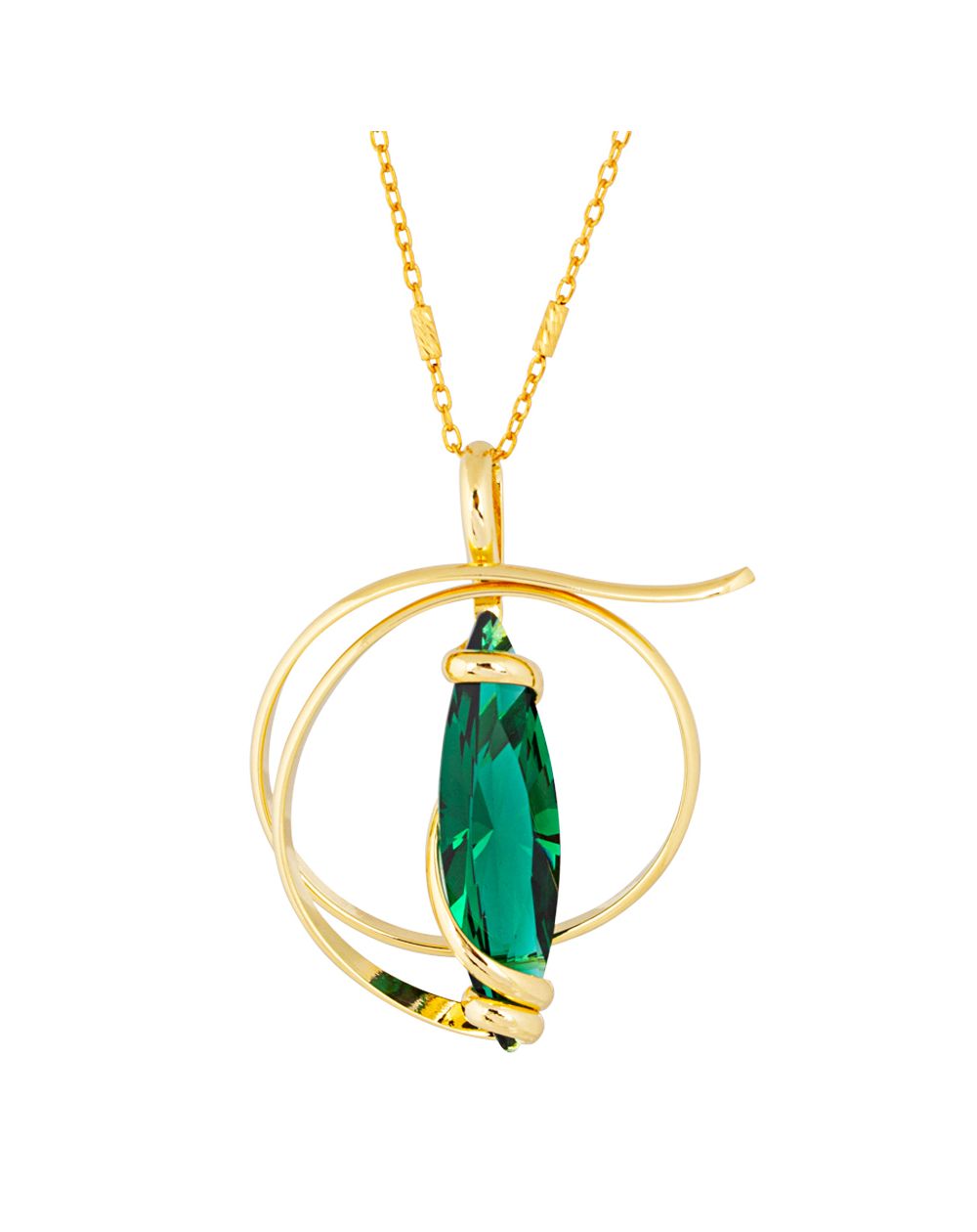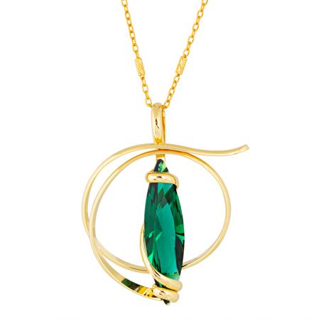 - Opmerkelijke hanger : een hanger met een diameter van 48 mm, voorzien van een Swarovski-kristal met smaragdgroene reflecties in een gouden structuur met vloeiende en artistieke lijnen.