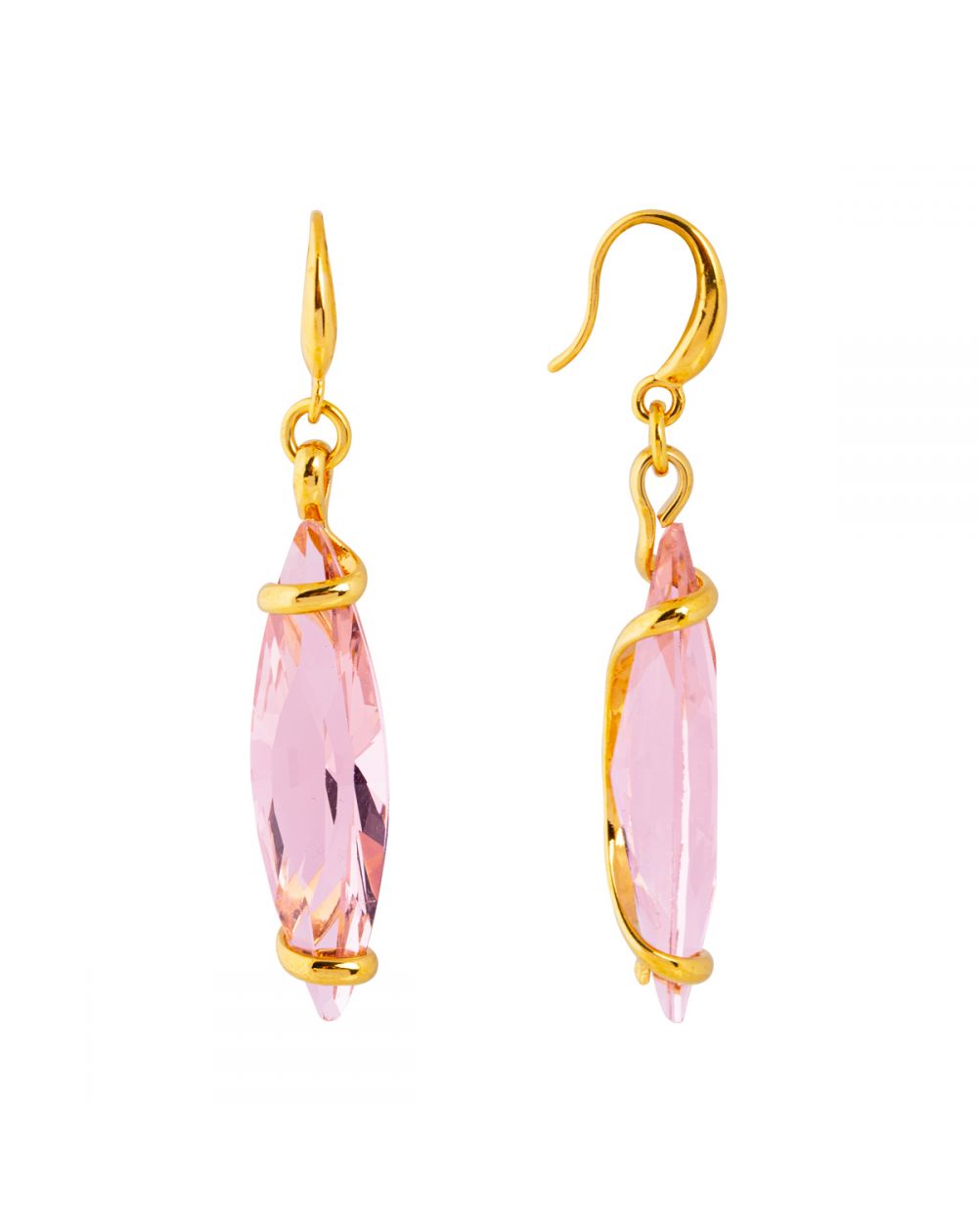 De kristallen zijn subtiel omhuld door een fijne, vergulde metalen zetting, die een vleugje warmte en elegantie aan het ontwerp toevoegt. Deze lussen zijn voorzien van een klassieke haak en zijn licht en comfortabel, ideaal om de hele dag of bij speciale gelegenheden te dragen.