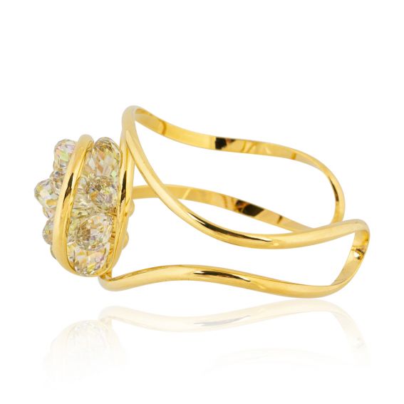 Verfraai uw pols met de Marazzini Small Bouquet Luminous Green -armband, een verfijnd sieraad van fijn verguld metaal. Het luchtige ontwerp omlijst een weelderig Swarovski-kristal van 27 mm , in een bloem gesneden voor een onweerstaanbare schittering. Een perfecte alliantie tussen verfijning en moderniteit, dit Italiaanse juweel belichaamt ambachtelijke luxe. Ideaal om je outfits op te fleuren, een musthave voor glamour.