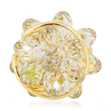 Verbeter je handen met de Andrea Marazzini Small Bouquet Luminous Green-ring , een ambachtelijk Italiaans stuk van fijn verguld metaal. Het weelderige Swarovski-kristal van 27 mm, gesneden in de vorm van een bloem, schittert met duizend gouden en iriserende reflecties en vangt elke lichtstraal op.