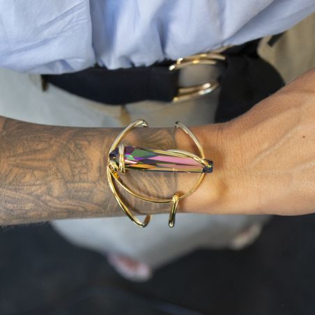 Deze armband van goud van het merk Marazzini is een armband met een vitraal stalattietkristal.
