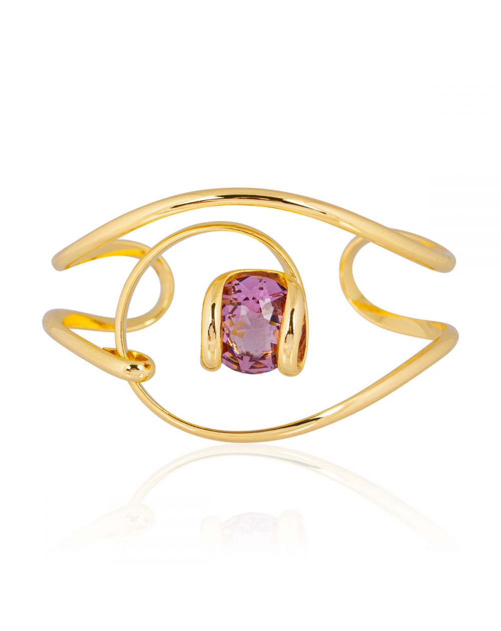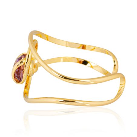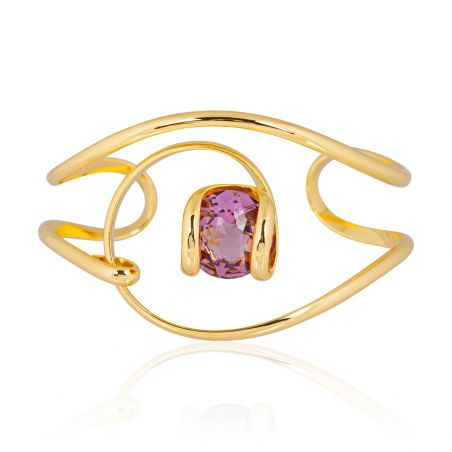 Verfraai uw pols met deze armband van goudkleurig metaal met een opengewerkt en gestructureerd ontwerp. De ovale Swarovski-steen in een stralend vintage roze kleur vangt het licht met schittering. Verstelbaar en verfijnd, combineert moderniteit en verfijning, perfect voor alle gelegenheden.