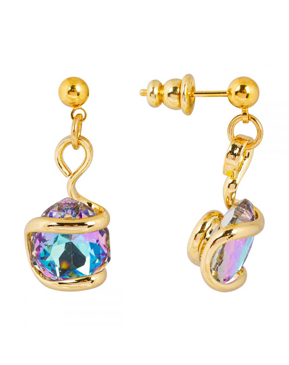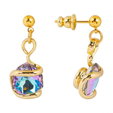 Deze verfijnde 27 mm hoge Marazzini-oorbellen vangen het licht met hun Swarovski Vitral Light-kristallen, met subtiele reflecties van blauw en paars. Het vloeiende en omhullende ontwerp zorgt voor een vleugje moderniteit en elegantie. Ze zijn licht en verfijnd en geven het gezicht een unieke gloed.