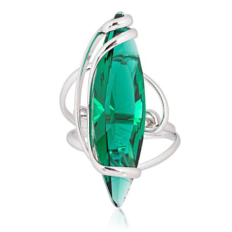 Verfraai uw hand met de Marazzini-ring , een gedurfde creatie van Andrea Marazzini. Het imposante 35 mm grote Swarovski Emerald-kristal, geslepen in de vorm van een navette, vangt het licht met intensiteit en onthult diepe en fascinerende reflecties.