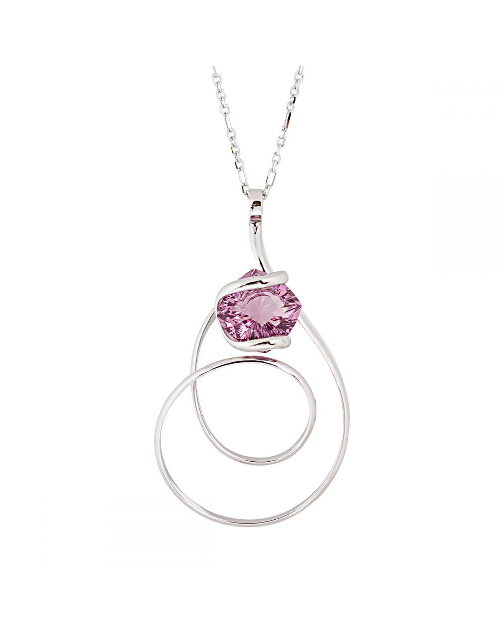 De Mystic Iris Rose-ketting van Andrea Marazzini is een uitzonderlijk sieraad dat moderniteit en verfijning combineert. De hanger van verzilverd messing heeft een vloeiend en luchtig silhouet, versterkt door een roze Swarovski-kristal, dat nauwkeurig is gefacetteerd om het licht schitterend te weerkaatsen.