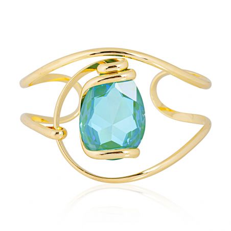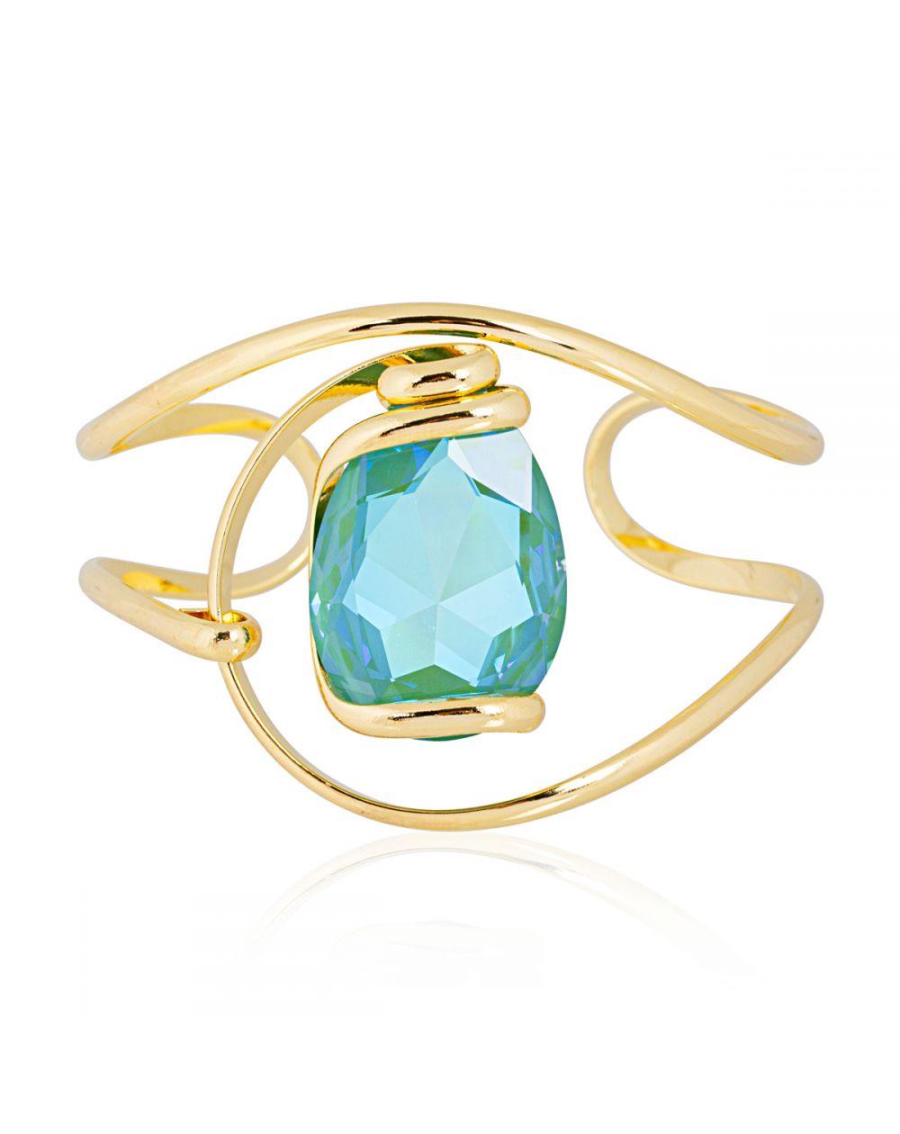 Het sculpturale ontwerp met verfijnde gouden rondingen omlijst het kristal in een moderne, opengewerkte setting, handgemaakt in Italië. Deze armband is verstelbaar en licht, past perfect om de pols en biedt optimaal comfort.