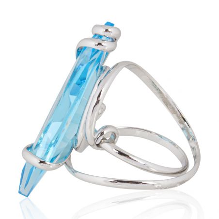 Verfijn uw stijl met de prachtige Andrea Marazzini Aquamarine-ring , een uitzonderlijk sieraad dat moderniteit en vakmanschap combineert. Het sculpturale ontwerp toont een prachtig 35 mm Swarovski Aquamarijn-kristal, in een punt geslepen voor een betoverende schittering en een slank silhouet.
