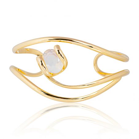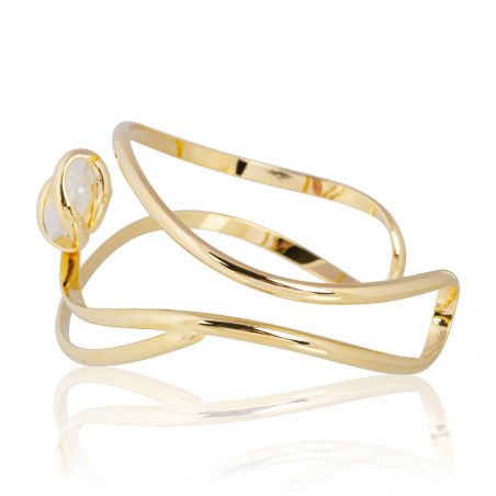 Geef uw pols een vleugje zachtheid en licht met de Andrea Marazzini Mini White Opal BR6 armband . Dit verfijnde sieraad van fijn verguld metaal is handgemaakt in Italië en heeft een strak, sculpturaal ontwerp, versterkt door een 12 mm dikke witte opaal Swarovski-kristal. De vloeiende lijnen van de armband omringen de steen op delicate wijze en creëren een perfecte balans tussen moderniteit en poëzie.