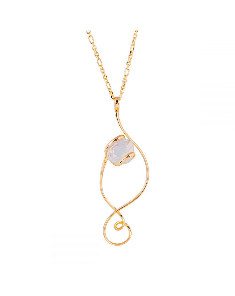 Laat u betoveren door de organische elegantie van deze Andrea-ketting van Marazzini. De vloeiende, vergulde hanger omringt een glinsterende witte opaalsteen en vangt het licht bij elke beweging. Een etherisch, sculpturaal en uitgesproken modern stuk, handgemaakt in Italië.