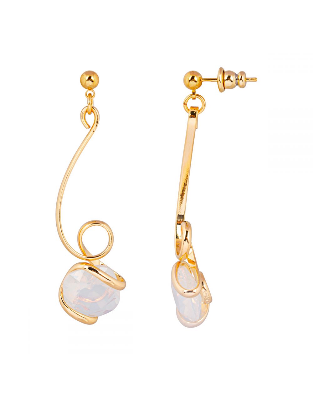 Marazzini Mini witte opaal lange oorbellen