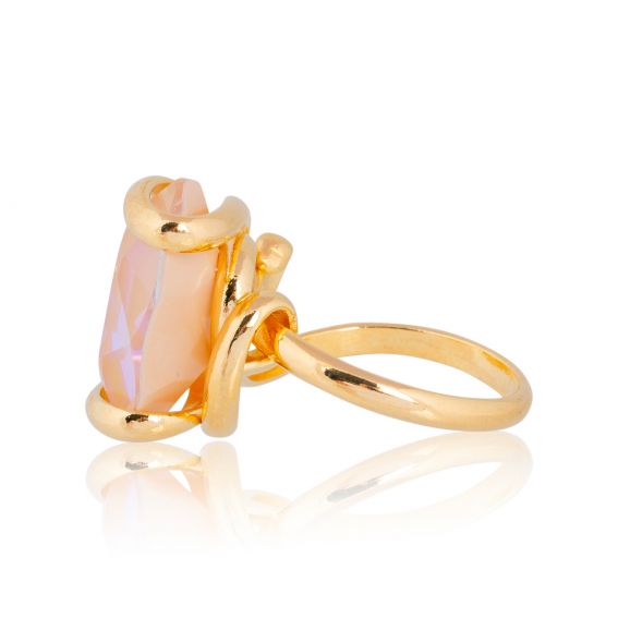 Deze delicate en stralende ring van Andrea Marazzini valt op door de ovale steen met subtiel iriserende ivoorkleurige accenten. Gezet in een fijne vergulde lijst met artistieke lijnen, belichaamt hij eigentijdse Italiaanse elegantie. Elk exemplaar is handgemaakt, wat dit exemplaar werkelijk uniek maakt.