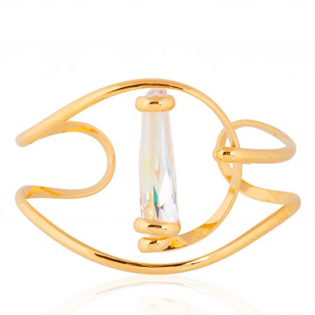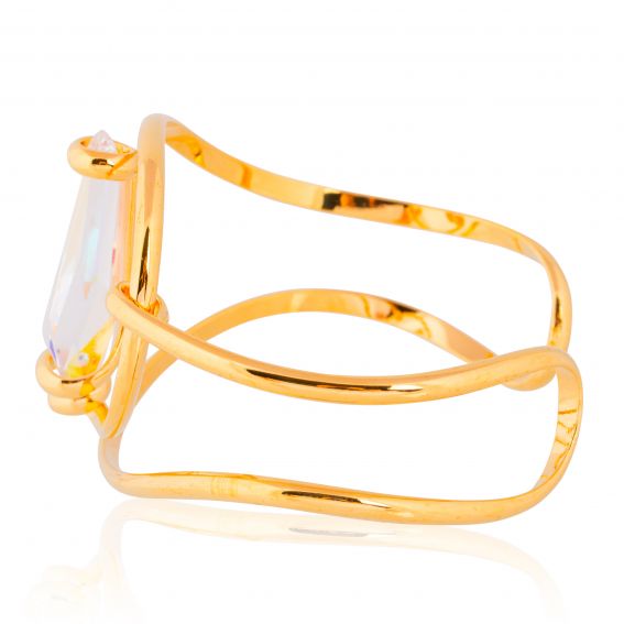 De Andrea Marazzini Stalattite AB-armband valt op door zijn architectonische en lichtgevende ontwerp, dat Italiaans vakmanschap weerspiegelt. Dit uitzonderlijke juweel, volledig met de hand gemaakt in Italië , combineert de elegantie van fijn verguld metaal met de betoverende schittering van een Swarovski® Aurora Borealis-kristal .