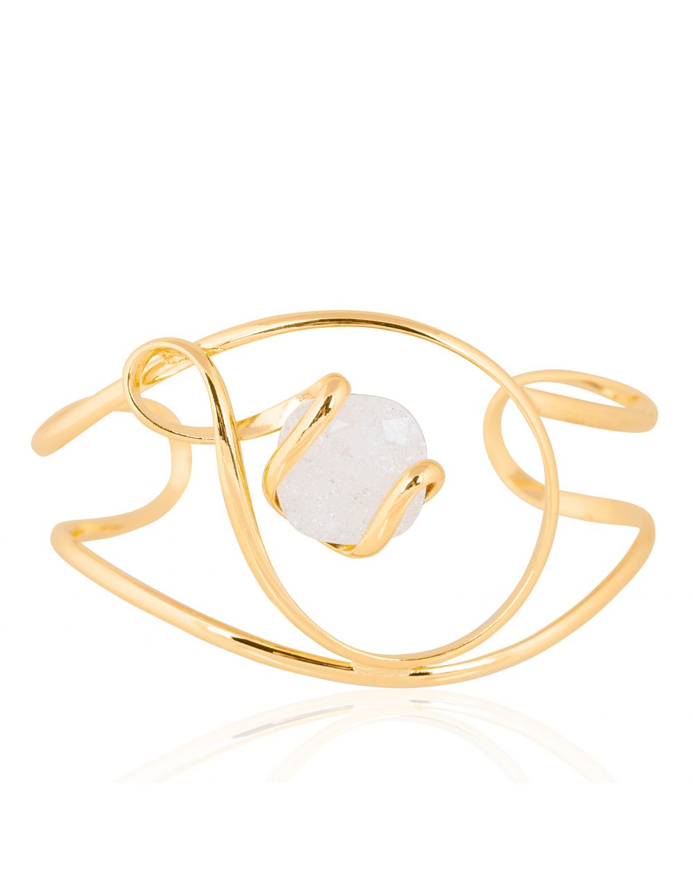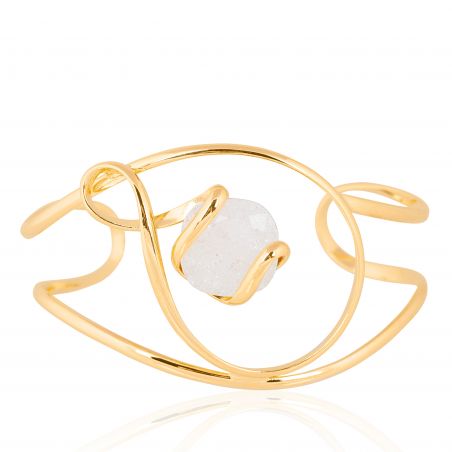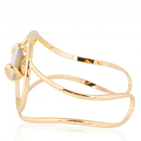 Het 24-karaats vergulde metalen frame omringt subtiel een weelderig Swarovski® White Opal kristal , waarvan de melkachtige tinten een zacht en verfijnd licht verspreiden. Elke beweging onthult subtiele parelmoeren reflecties, waardoor deze armband een discrete maar betoverende schittering krijgt.