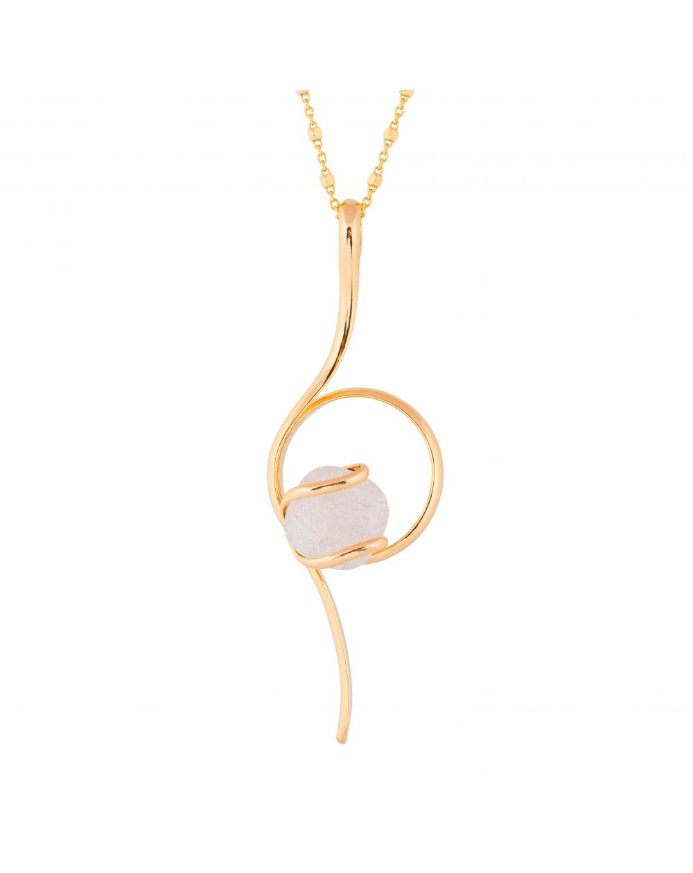 De hanger, subtiel opgehangen aan een gouden ketting, maakt deel uit van een moderne en minimalistische stijl, maar behoudt toch de artistieke touch die kenmerkend is voor het huis Marazzini. Deze ketting accentueert het decolleté met een sierlijke en vrouwelijke uitstraling , ideaal voor zowel overdag als 's avonds.