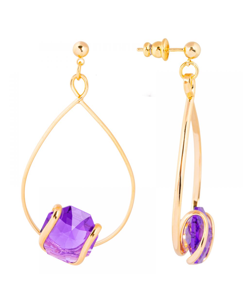 Laat je betoveren door de betoverende schittering van de Andrea Marazzini Octagon Violet Indie oorbellen , ware Italiaanse kunstwerken. Elk exemplaar is voorzien van een weelderig paars Swarovski-kristal , geslepen in een achthoek en hangend aan een 24-karaats vergulde structuur in een elegante druppelvorm.