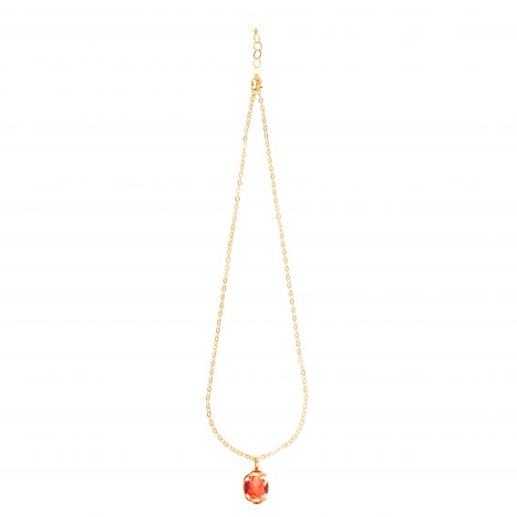 Geef je outfit een zonnige en stralende touch met deze ovale oranje ketting van Andrea Marazzini , een elegante en eigentijdse creatie, verfraaid met een gefacetteerd Swarovski-kristal met warme reflecties.