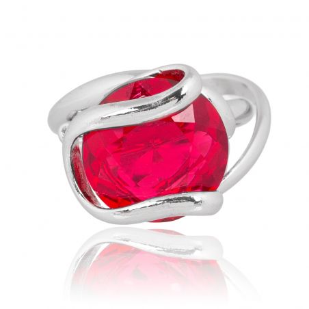 De Andrea Marazzini Cherry Red ring betovert met de intense glans van het 14 mm grote rode Swarovski-kristal , met zijn diepe en heldere reflecties. De ring is gezet in een verzilverde structuur met vloeiende en eigentijdse lijnen, die de steen elegant omsluit en tegelijkertijd het licht doorlaat voor maximale schittering.