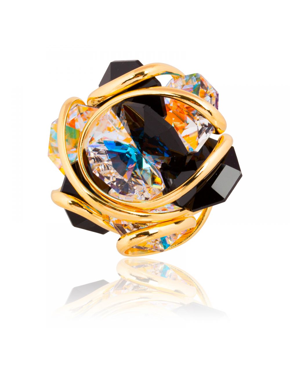Andrea Marazzini Flower F60 AB/Zwartgouden ring – zwarte en iriserende Swarovski-kristallen