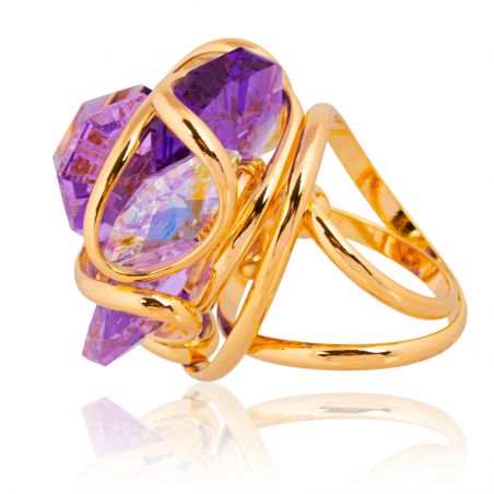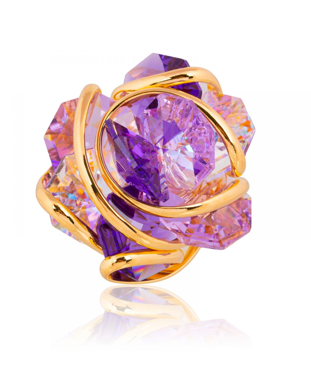 Andrea Marazzini Flower F14 Mix Violet gouden ring – paarse Swarovski-kristallen
