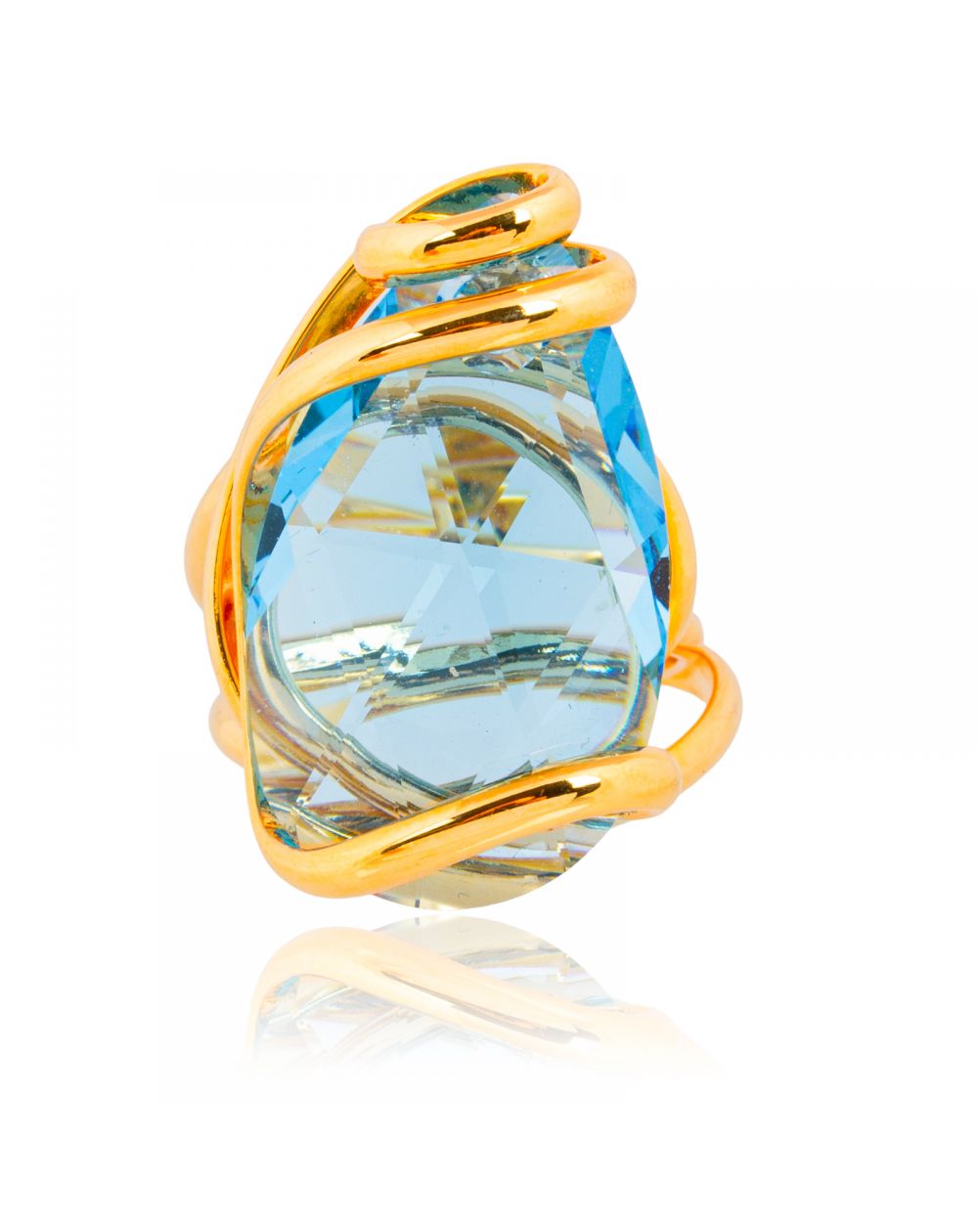 Andrea Marazzini druppelvormige aquamarijnring in goud – lichtblauwe Swarovski-kristallen