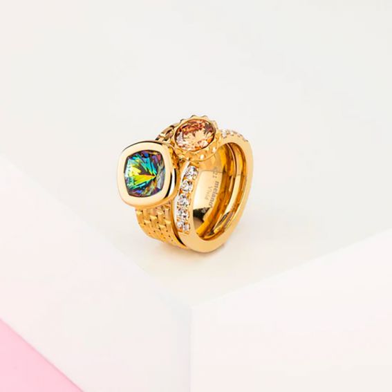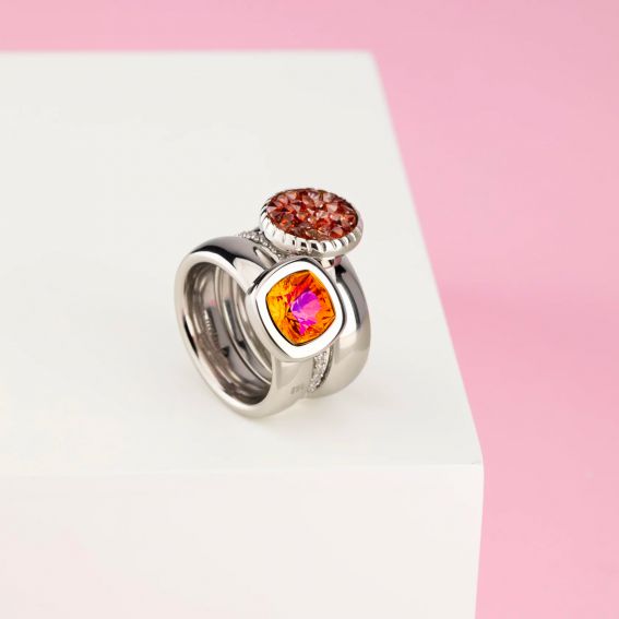 Dit Vivid-element wordt op een Melano- ring uit de Vivid-collectie geschroefd. Het is samengesteld uit een gefacetteerde steen van zwarte kleur. Dit element is 10 mm breed en de omtrek is zilver van kleur.