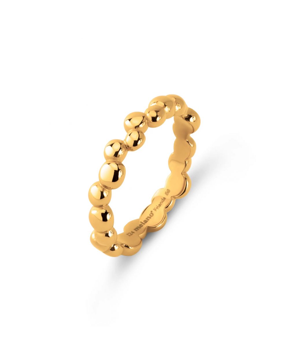 De Melano Friends Maud ring heeft een speelse uitstraling dankzij het bijzondere asymmetrische design. Het ontwerp doet denken aan vrolijke bubbels en zeepbellen en past perfect bij een zomerse look. De rondingen breken het licht prachtig, waardoor de ring extra sprankelt. De Maud ring is 5,5 mm breed en verkrijgbaar in zilver, roségoud of verguld.