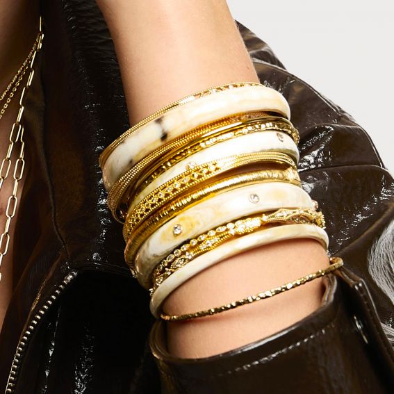 De lupita armband is perfect voor wie graag een statement en trendy look laat zien. Veelzijdig, hij kan alleen gedragen worden voor een statement-effect, of gecombineerd met andere armbanden om een meer persoonlijke en dynamische look te creëren. Het is een ideaal kledingstuk voor een avondje uit of een speciale gelegenheid, maar ook een chique toevoeging aan een dagelijkse outfit, waardoor de stijl wordt verhoogd met elegantie en moderniteit.