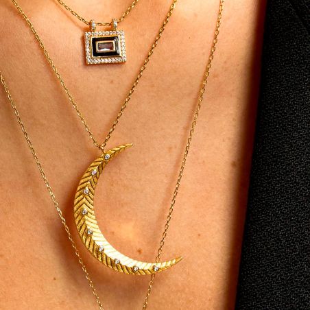 De Big Moon ketting van MYA BAY , verguld met fijn 24-karaats gerecycled goud, is een uniek stuk dat een mysterieuze en boeiende charme onthult.