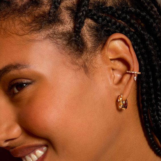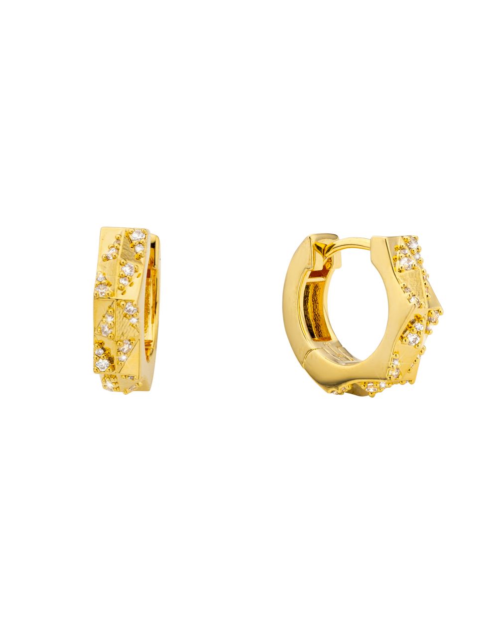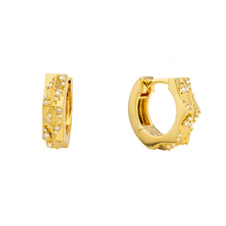 Deze oorbellen zijn een perfecte combinatie van verfijning en moderniteit en betoveren met hun gestructureerde ontwerp en delicate, fonkelende zirkonen. Ze spelen met volumes en geven een trendy en discrete touch aan uw stijl. Ze zijn verkrijgbaar in 8 mm en 14 mm en zijn voorzien van een 24-karaats vergulding van gerecycled goud, wat een tijdloze glans garandeert. Een MYA-BAY kenmerk om je look in elk seizoen op te fleuren!