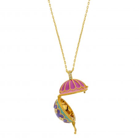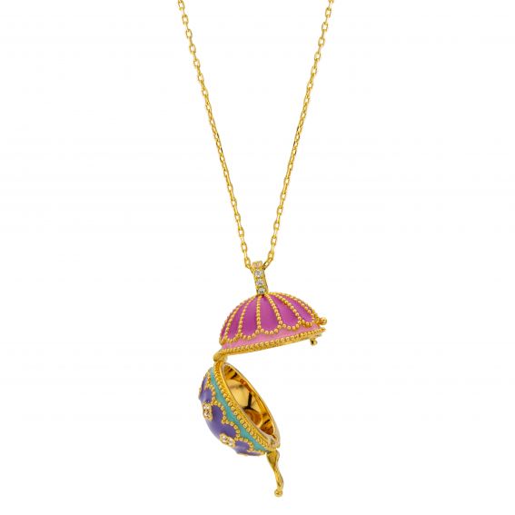 De Rainbow Fuchsia Protection-ketting, verguld met 24-karaats gerecycled fijngoud, herbergt een geheim: de hanger kan worden geopend en bevat een steen of een geluksbrenger. Elegant en mystiek, het wordt uw persoonlijke talisman.