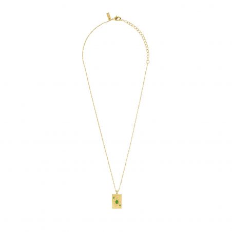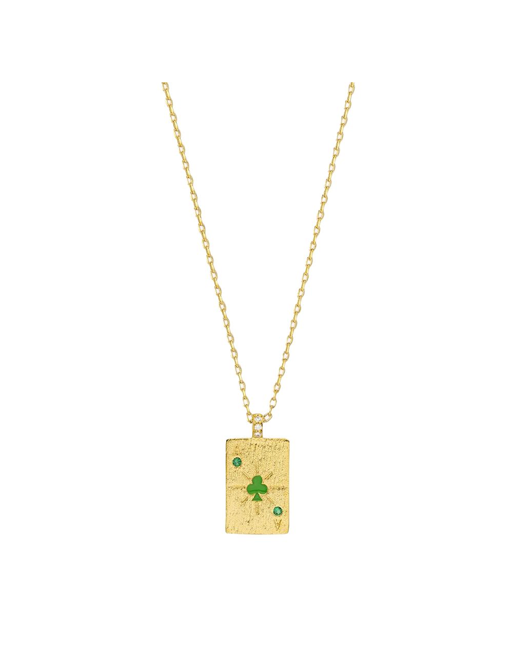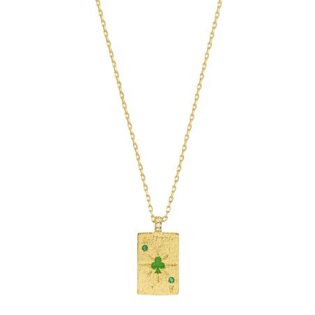 De ACE OF CLUBS-ketting van MYA—BA Y belichaamt de vrije en rebelse geest. Het sieraad is verguld met 24-karaats gerecycled fijngoud en heeft een hanger die is geïnspireerd op het klavertjevier, een symbool van vrijheid, instinct en onafhankelijkheid.