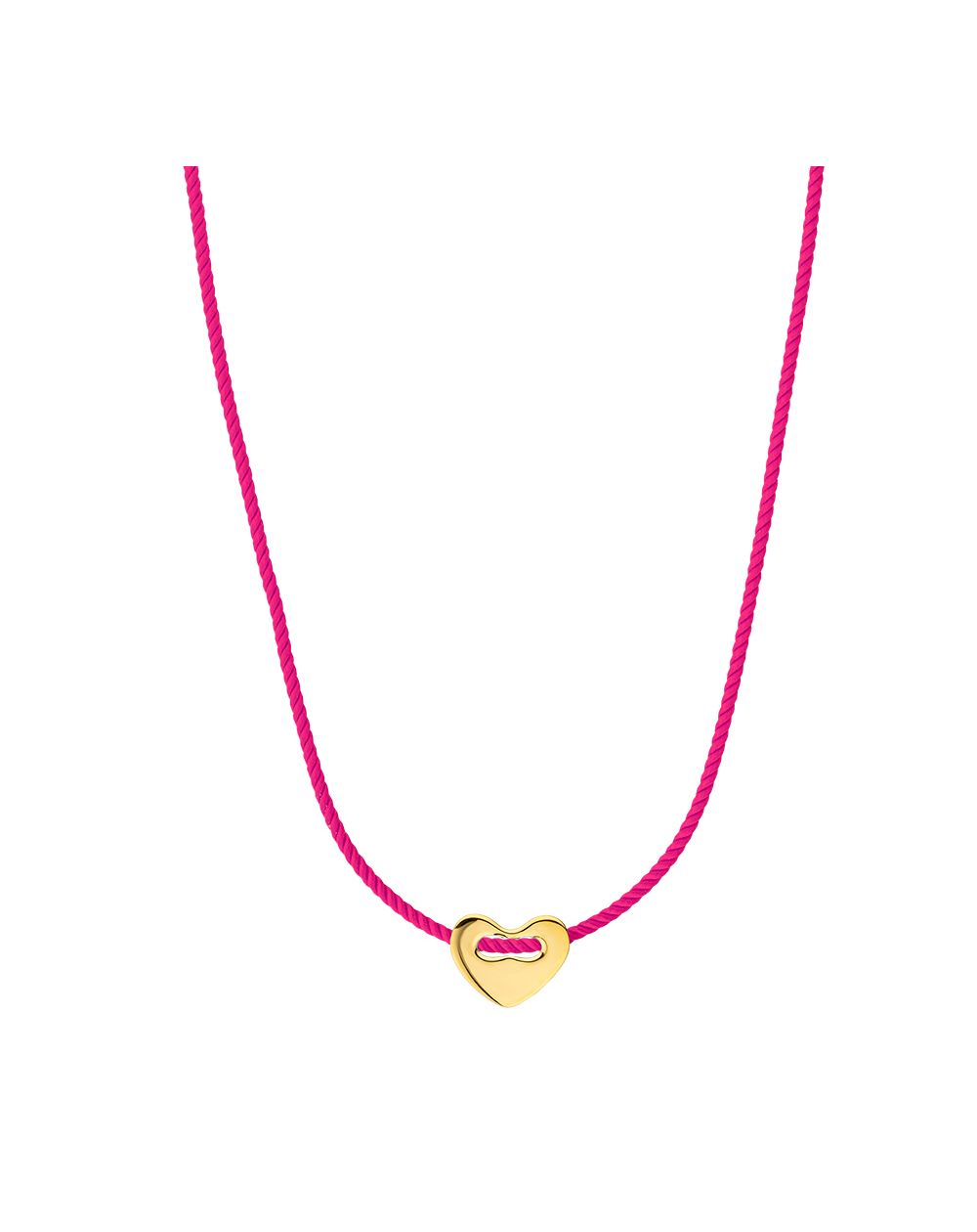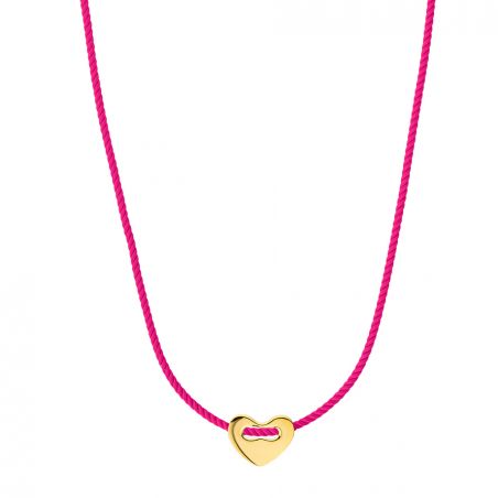 De FUCHSIA CORAZON ketting van MYA—BAY voegt een vrolijke en vrouwelijke toets toe aan je stijl. Het is verguld met 24-karaats gerecycled fijngoud en voorzien van een felroze koord dat een vrolijke en sprankelende energie uitstraalt.