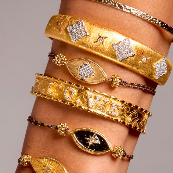 Dankzij het verstelbare systeem past hij zich aan elke pols aan en kan hij afzonderlijk worden gedragen voor een chique touch of gecombineerd met andere armbanden voor een trendy, getailleerde look. De Bella Iris weerspiegelt perfect het DNA van Mya Bay: lichtgevende sieraden, zowel modern als symbolisch.