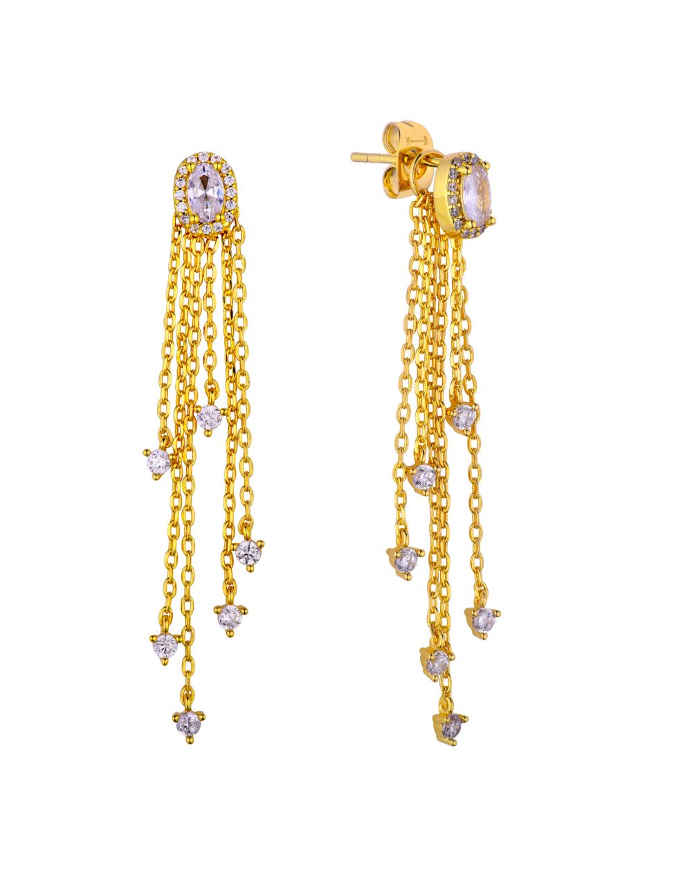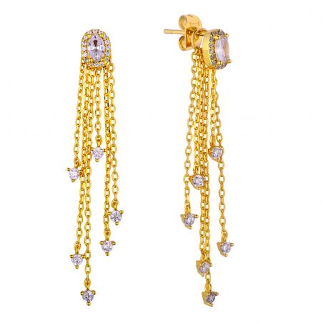 De Dynasty Sienna oorbellen van MYA BAY betoveren met hun luchtige elegantie en onweerstaanbare schittering. Met een lengte van 55 mm onthullen ze een verfijnde cascade van gouden kettingen, onderbroken door glinsterende zirkonia's , die bij elk gebaar een vloeiende en stralende beweging creëren. Het centrale element, een marquise-geslepen zirkonia omgeven door een sprankelende halo, voegt een kostbare dimensie toe die het gezicht subtiel verlicht.