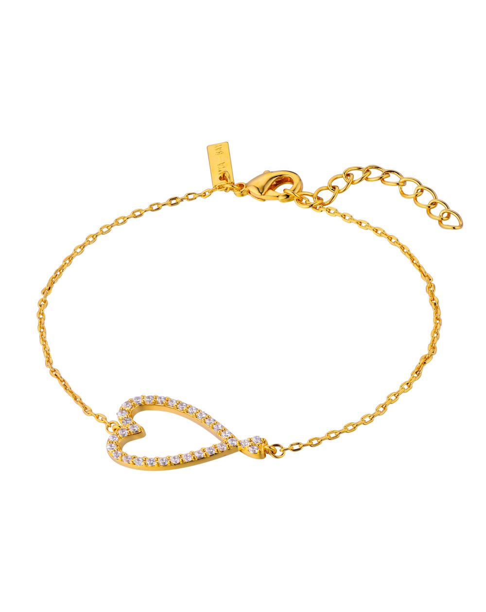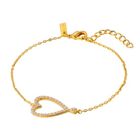 De Twin Hearts -armband van MYA BAY valt op door zijn romantische en stralende design, met een dubbel langwerpig hart als hanger, subtiel bezet met sprankelende zirkonia's . Het slanke en elegante vergulde silhouet geeft hem een tijdloze look, perfect om een vleugje zoetheid en glans aan de pols te geven.