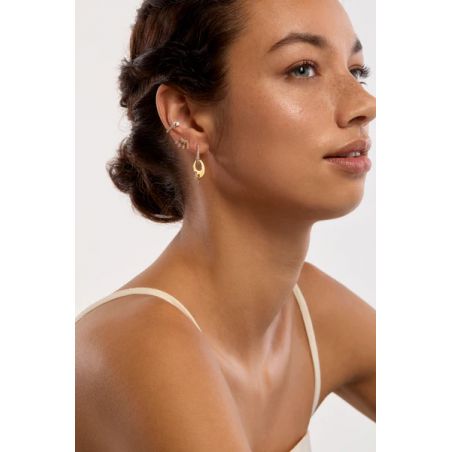 Het waaiervormige ontwerp sluit perfect aan op de oorlel en verlicht het gezicht dankzij de afwisselende inkepingen, waardoor ze bij elke beweging een dynamische glans geven. Elegant en modern, ze voegen een vleugje haute couture toe aan elke look, van minimalistisch tot elegant.