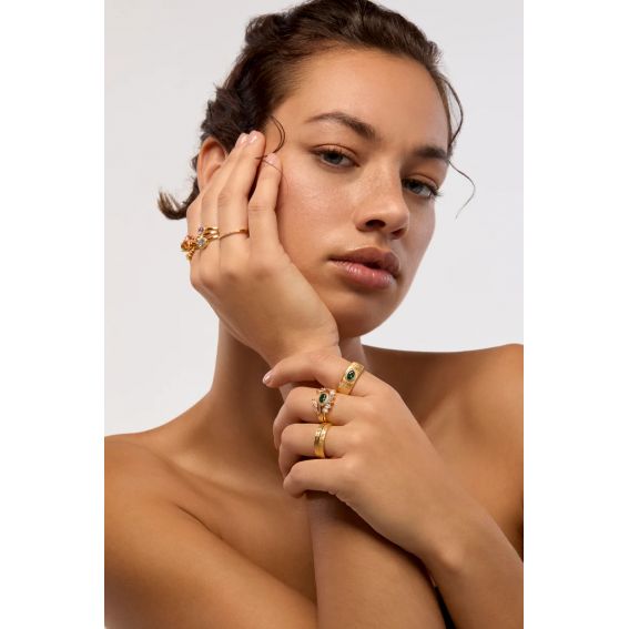 De STORY- ring van MYA-BAY belichaamt elegantie in haar puurste en meest verfijnde vorm. Als subtielere variant van de iconische LOVE AFFAIR betovert hij met zijn strakke lijnen en delicate pavézetting van sprankelende zirkonen.