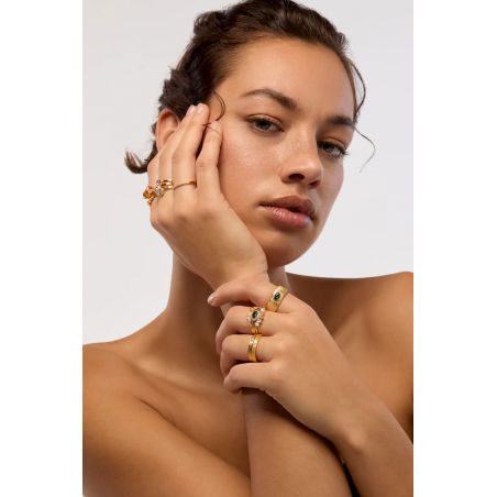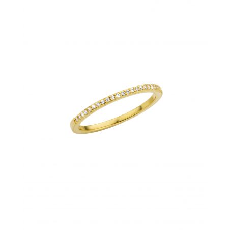 De delicate band, verfraaid met een rij schitterende steentjes, voegt een vleugje kostbaarheid toe en blijft tegelijkertijd minimalistisch. Discreet maar verfijnd, vangt het het licht perfect op en siert de vinger met een lichte uitstraling.