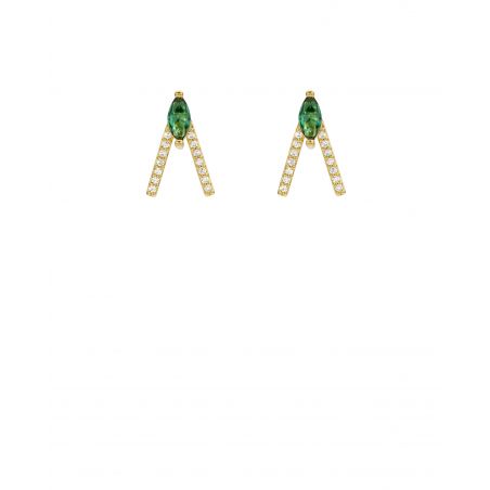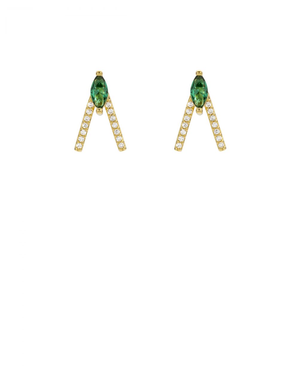 De GREEN BIRD- oorringen van MYA-BAY voegen een vleugje kostbare kleur toe aan een grafisch en eigentijds ontwerp.