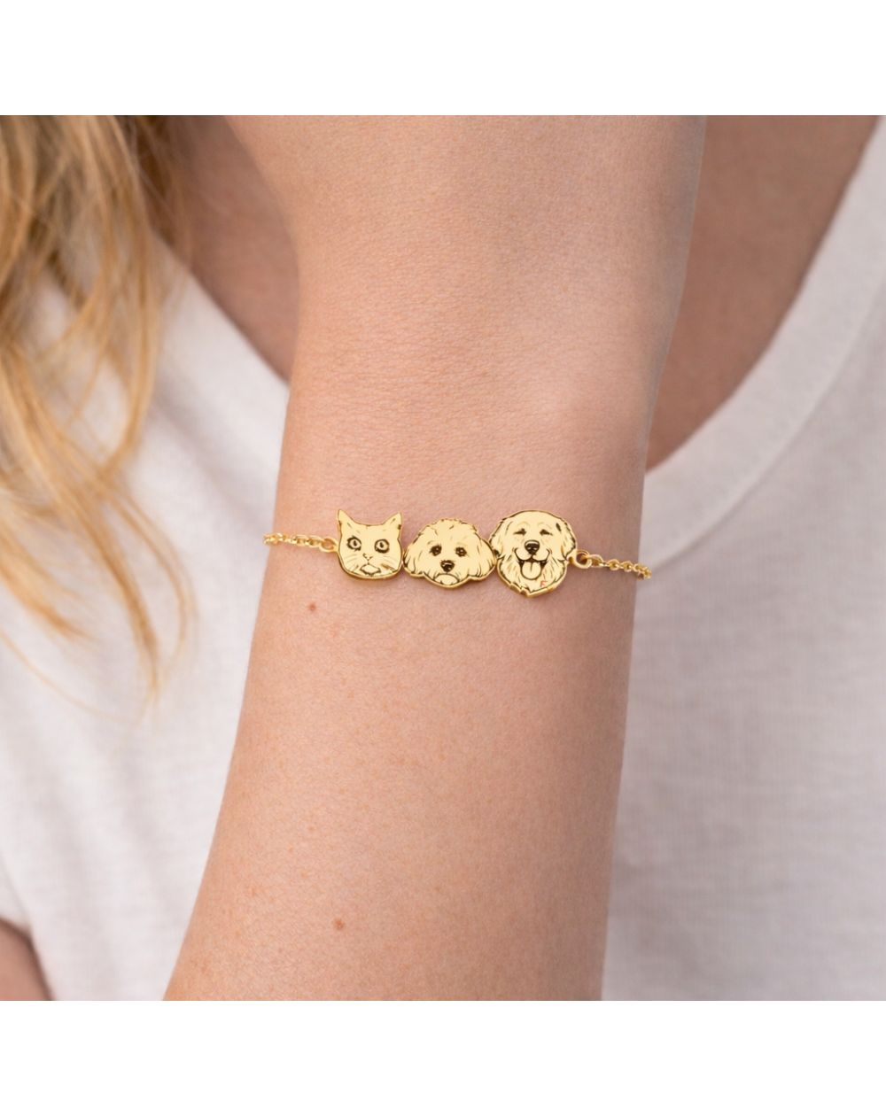 Deze armband, gemaakt van verguld of verzilverd roestvrij staal , combineert elegantie, verfijning en duurzaamheid voor dagelijks gebruik. De verstelbare lengte van 17 cm zorgt voor een comfortabele pasvorm en past zich gemakkelijk aan elke pols aan. Je kunt kiezen voor één dier of tot drie honden- of kattenkoppen combineren op één sieraad voor een nog persoonlijker aandenken.
