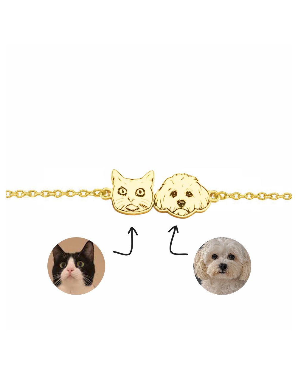 Vereeuwig je trouwe viervoeter met deze gepersonaliseerde armband , een sieraad vol emotie, ontworpen om je hond of kat altijd dicht bij je te houden. Aan de hand van jouw foto's maken we 1 tot 3 gepersonaliseerde dierenhoofdjes om een unieke, verfijnde en betekenisvolle armband te creëren.