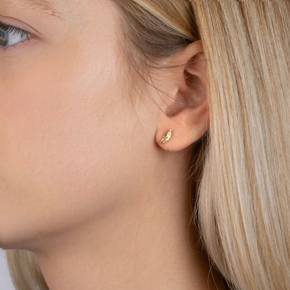 Oorbellen met veren, verguld met 18 karaats goud – Fijne en elegante piercings
