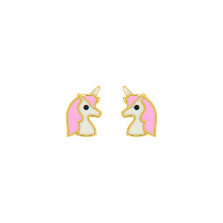 Deze 9 karaat gouden oorbellen zijn kleine boren in de vorm van geëmailleerde eenhoorn.