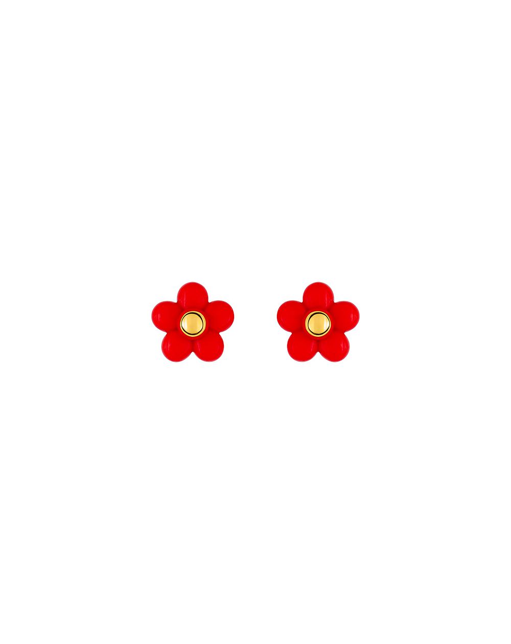 Deze 9 karaat gouden oorbellen zijn kleine boren in de vorm van een geëmailleerde bloem.