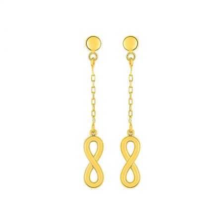 Deze 9 karaat gouden oorbellen zijn oneindige hangeroefeningen. Ze sluiten met behulp van een vlinder.